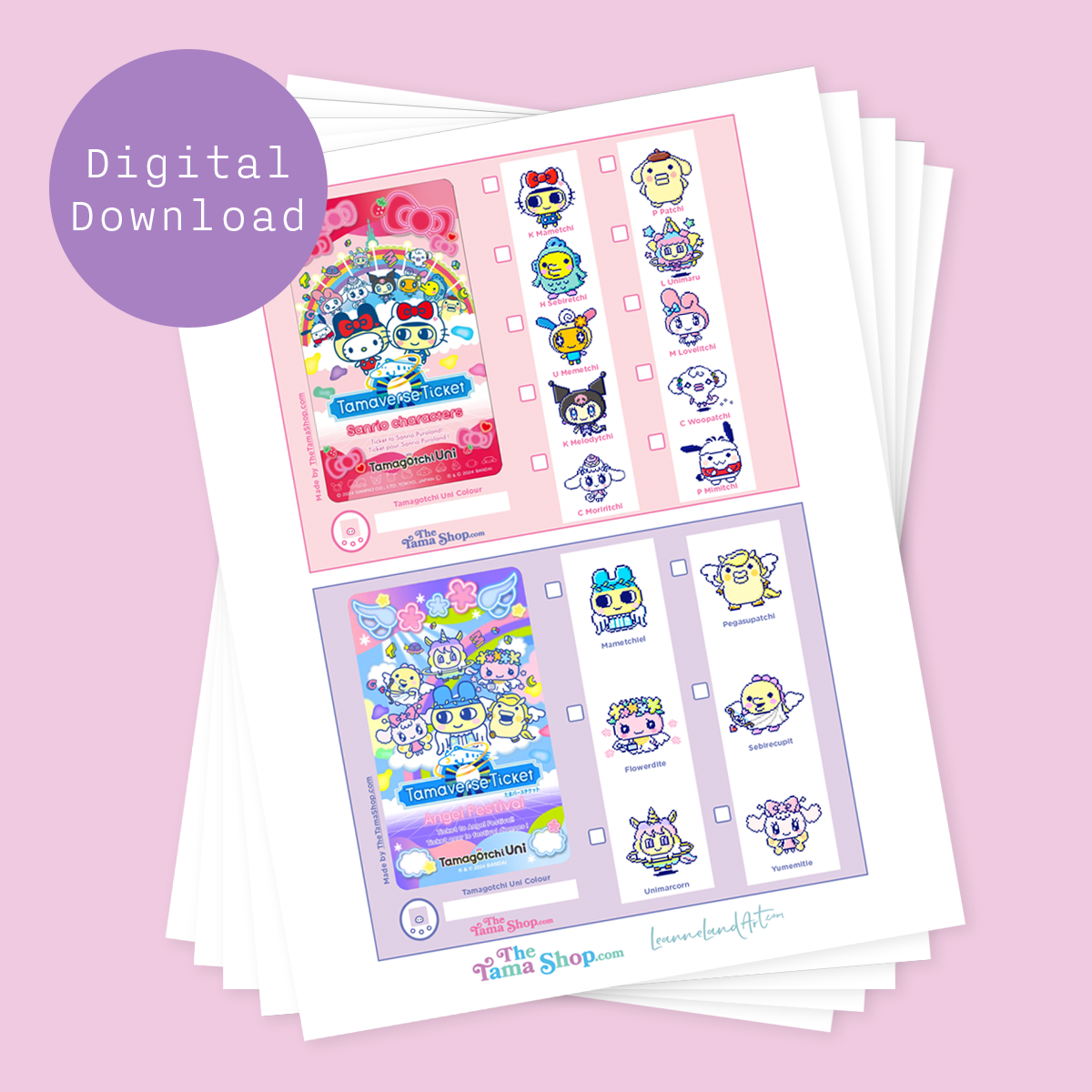 Check off the characters you've gotten from your Tamaverse Ticket with these checklists! I use these checklists to keep track of all the characters I've raised. You will receive a PDF file with each Tamaverse Ticket Checklist included. Simply print and cut them out so you can carry them with you.