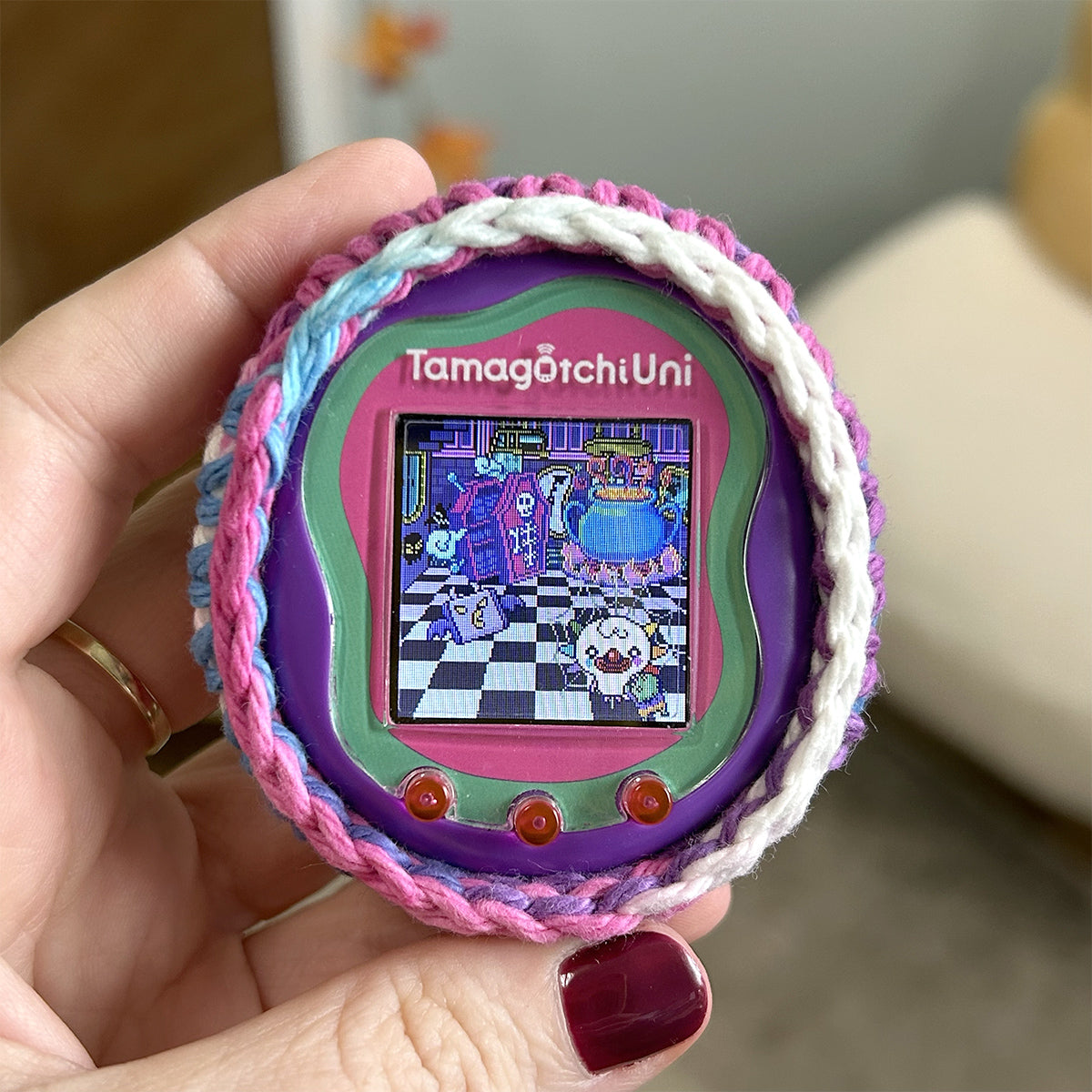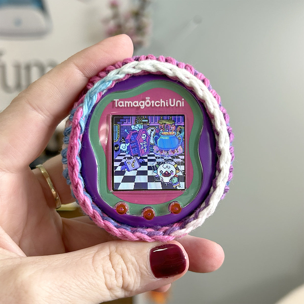 Keep your Tama baby safe with a hand crocheted Tamagotchi Uni case! Includes a charm hole and a charging port hole. Cases are made to be a nice snug fit.