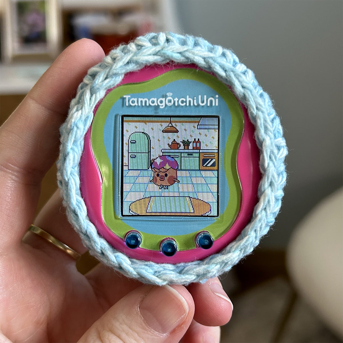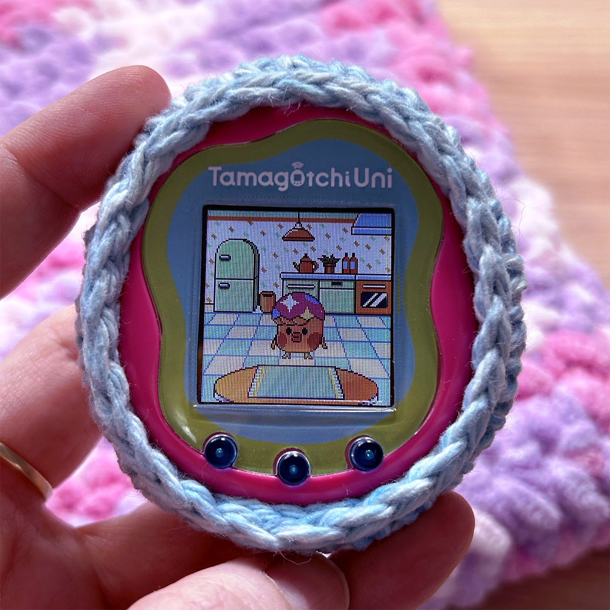 Keep your Tama baby safe with a hand crocheted Tamagotchi Uni case! Includes a charm hole and a charging port hole. Cases are made to be a nice snug fit.