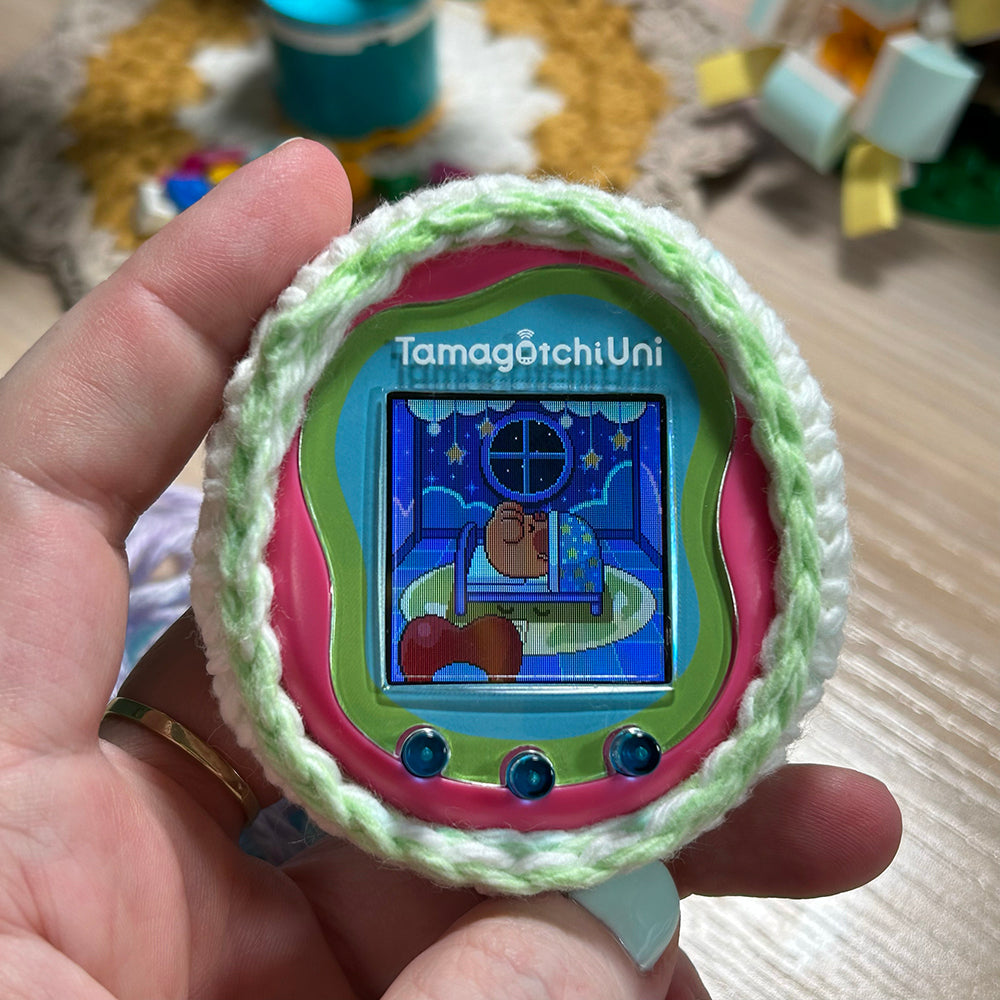 Keep your Tama baby safe with a hand crocheted Tamagotchi Uni case! Includes a charm hole and a charging port hole. Cases are made to be a nice snug fit.